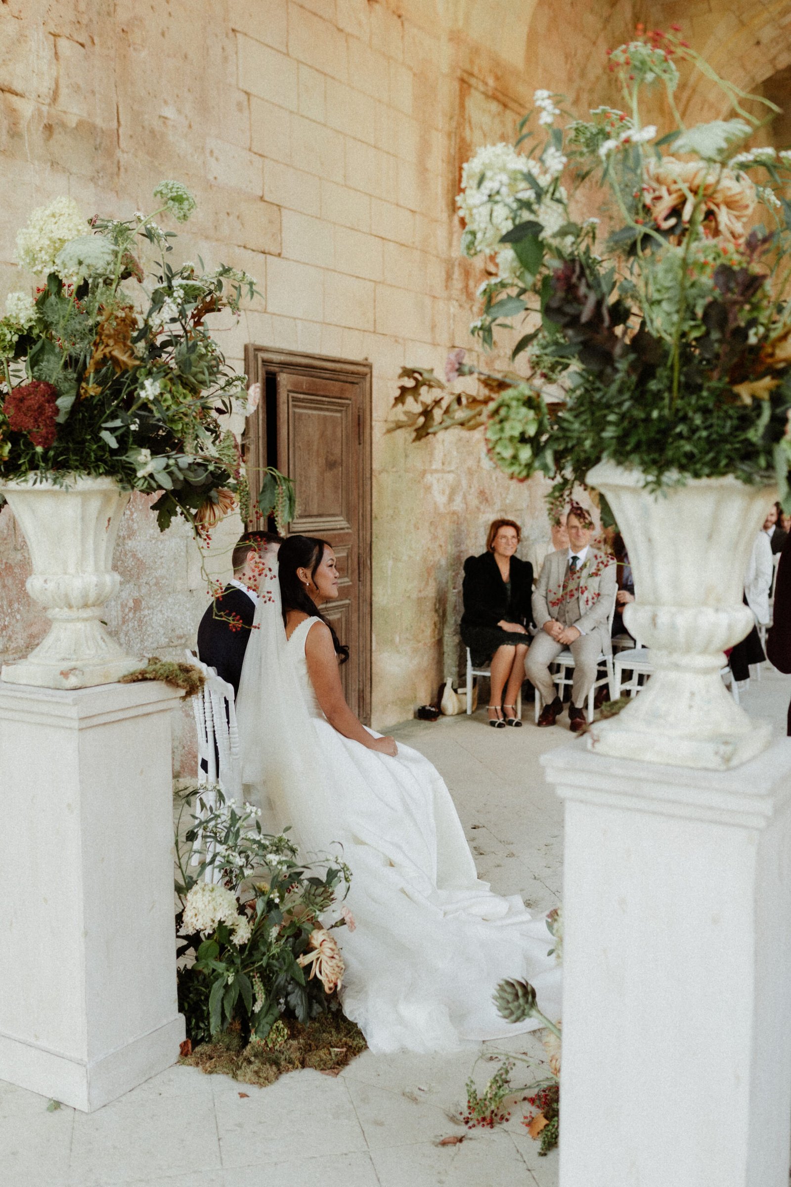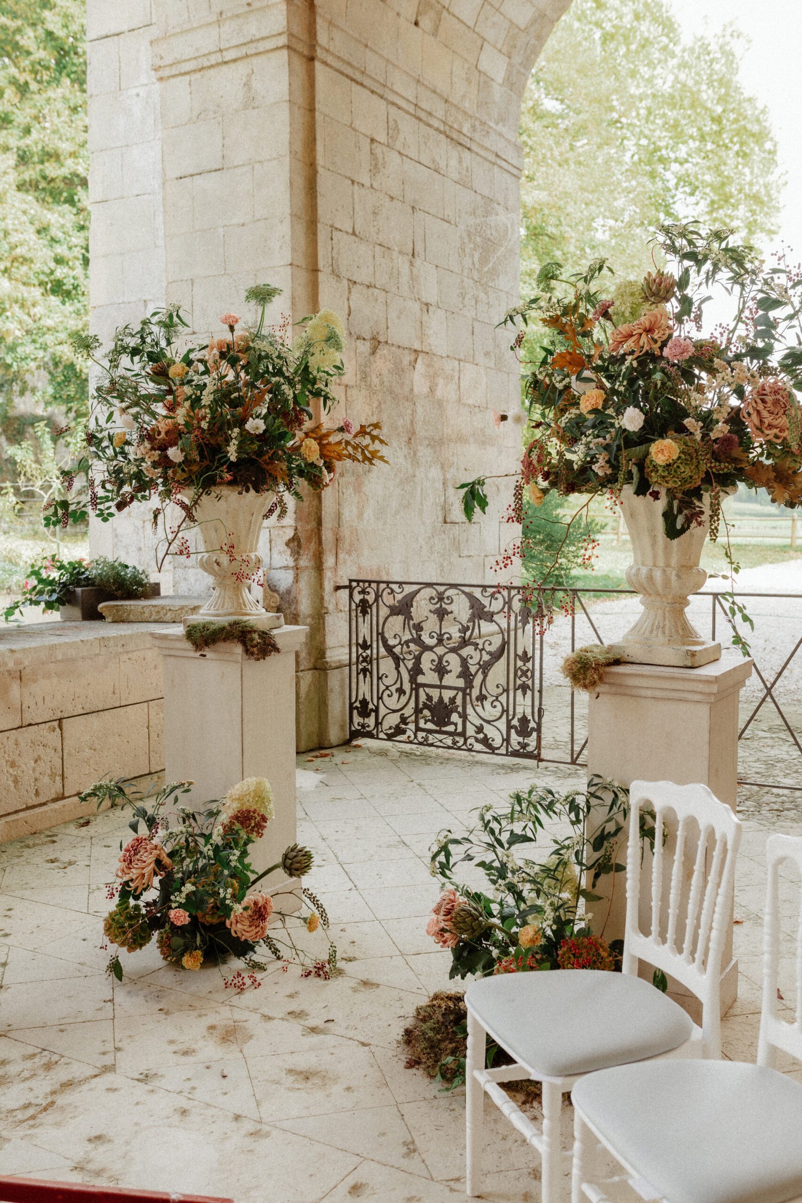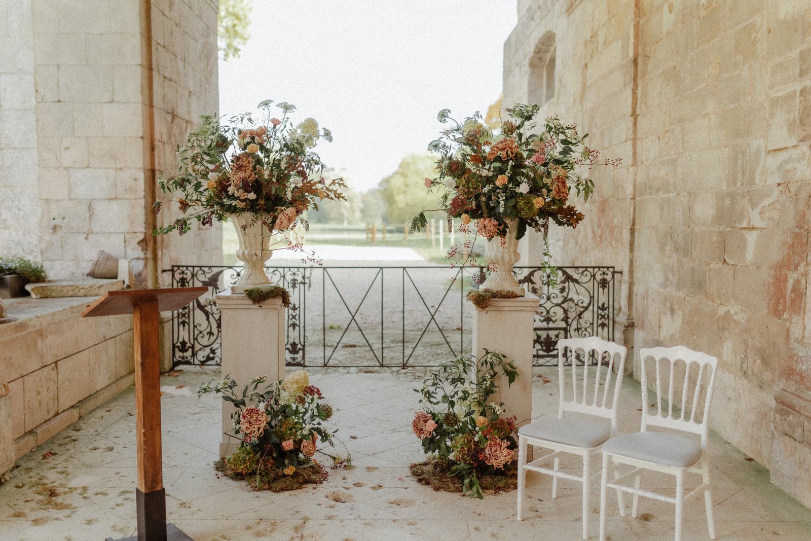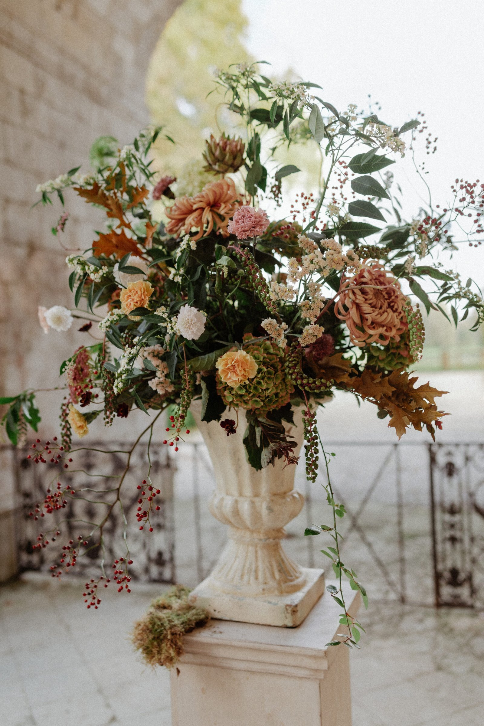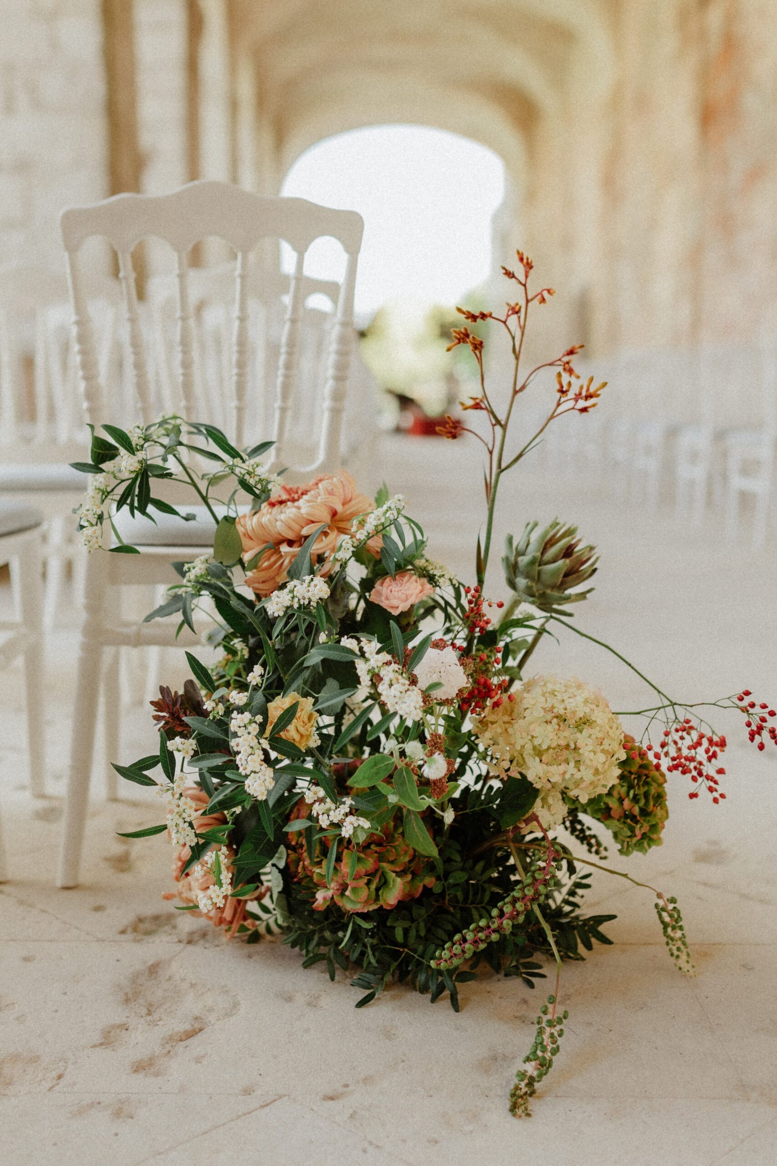 Les fleurs réalisées par Ancolie Vagabonde étaient tout simplement wahou. De grandes compositions aux teintes automnales qui se mariaient parfaitement avec le thème du jour : un mariage nostalgique et élégant.