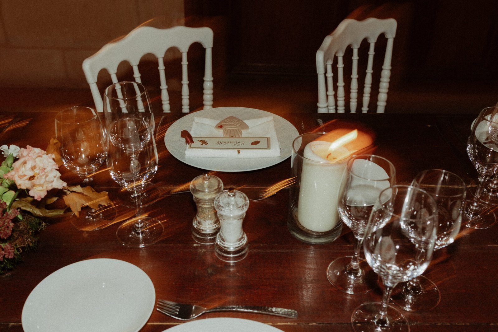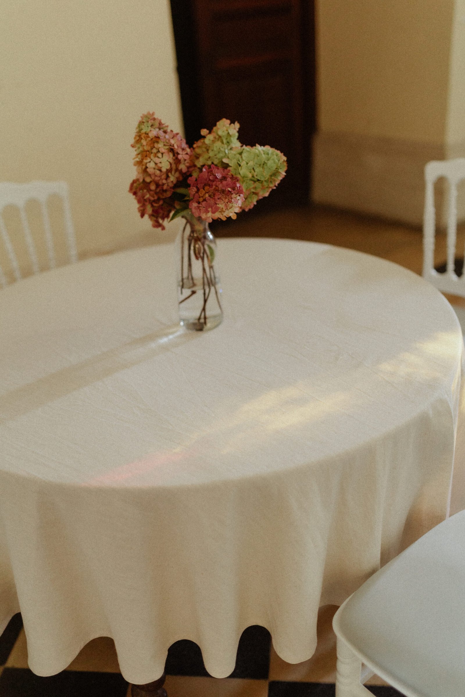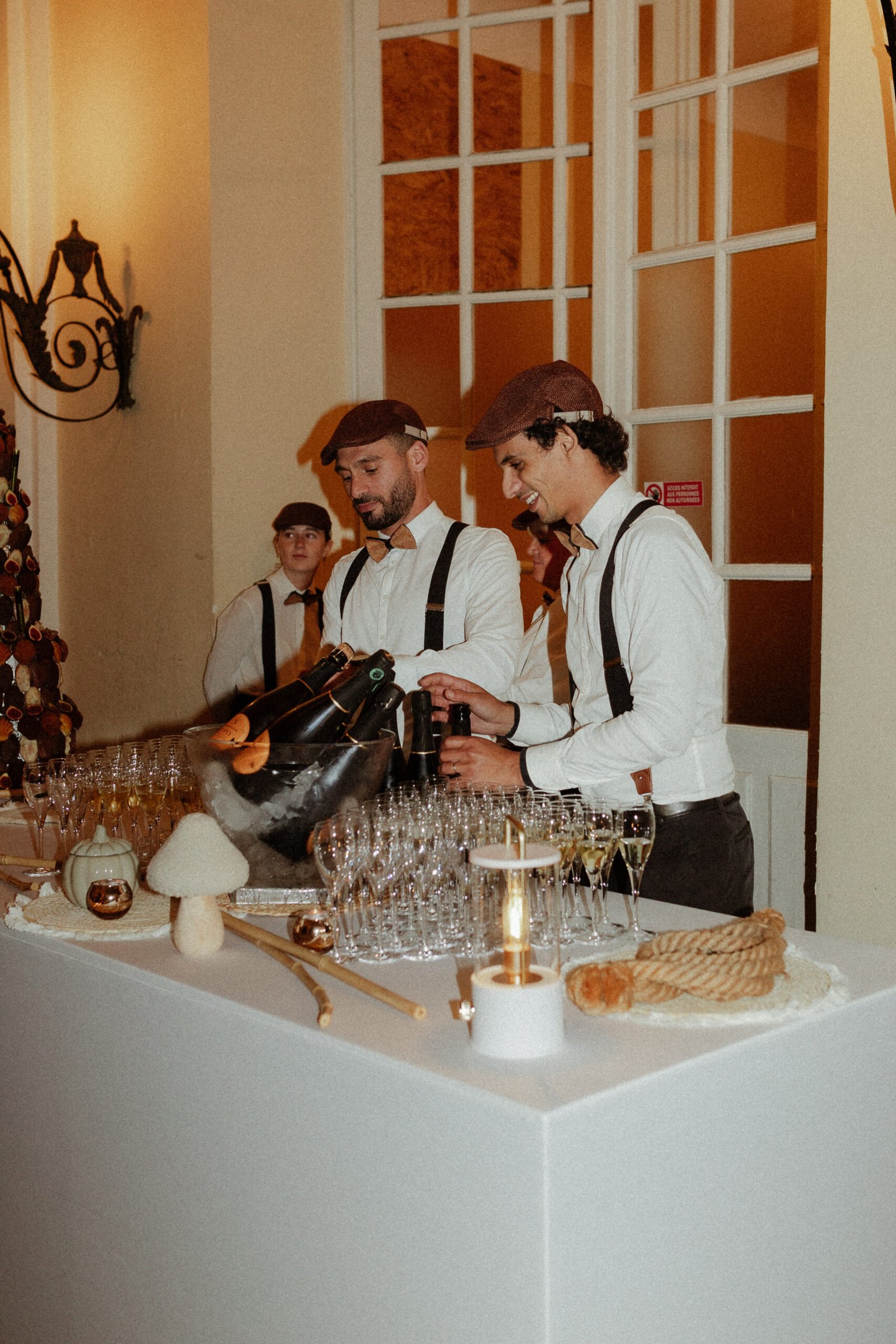 Le thème choisi par les mariés : une nostalgie élégante. Des tons doux, un peu rétro, une déco sobre mais pleine de sens. Rien d’ostentatoire — juste de la beauté simple et sincère.Les détails étaient soignés : de la papeterie artisanale aux bougies délicatement disposées, chaque élément contribuait à créer une atmosphère à la fois chaleureuse et poétique.