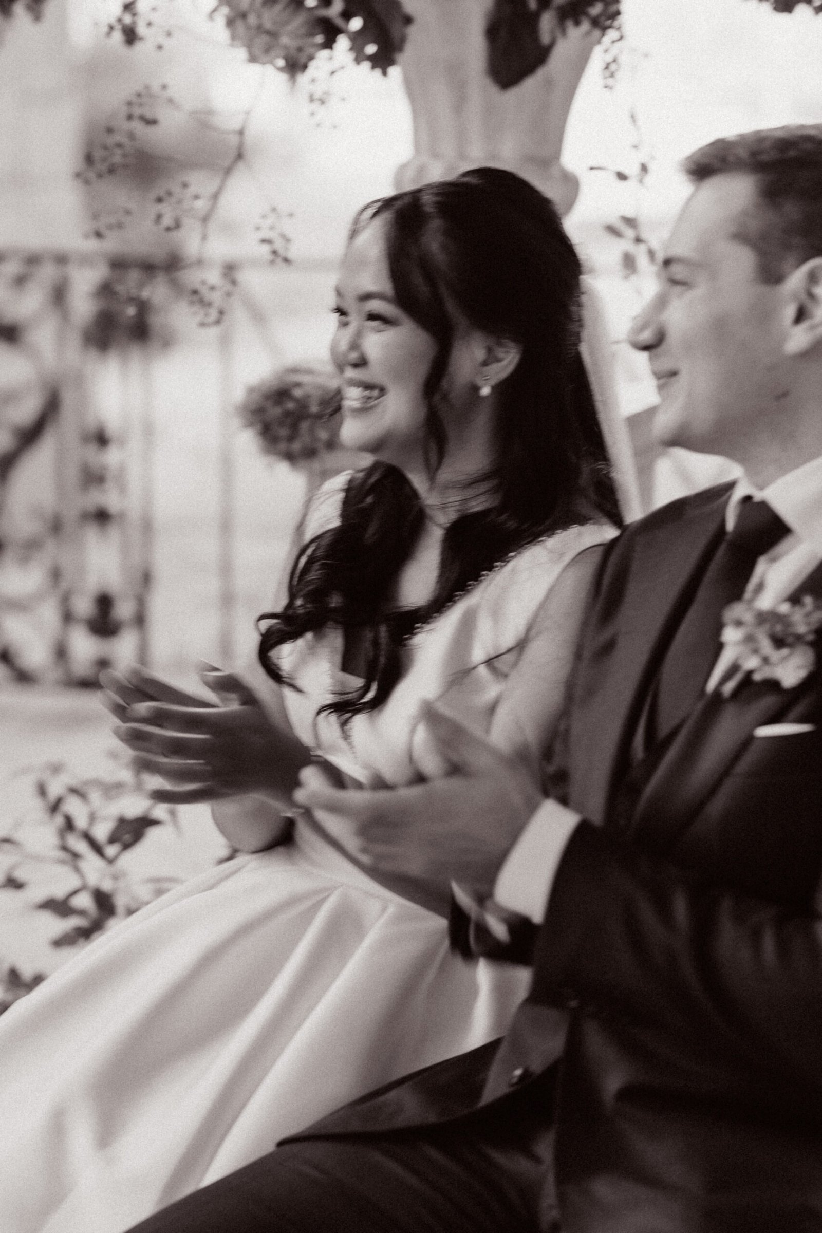 Fleurs : Ancolie Vagabonde – Traiteur : Madness Traiteur – DJ : MCey Event – Maquillage/coiffure : Chloé Talleux – Robe : Rosa Clara – Costume : Suit Supply – Chaussures : Stuart Weitzman & Meermin Mallorca – Alliances : Valérie Danenberg
